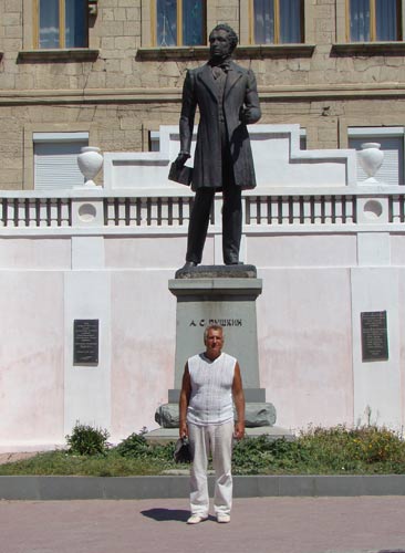 Іван Левченко біля пам’ятника Олександру Пушкіну в Бахчисараї