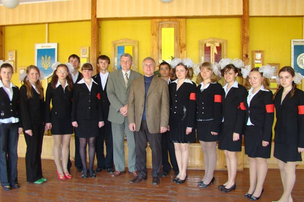Іван Левченко серед учнів Малотокмачанської середньої школи на Запоріжжі